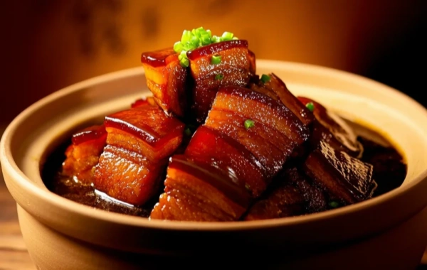 Caractéristiques: Dongpo Porc, nommé d'après le célèbre Dynastie de la chanson Le poète Su Dongpo est un plat de Hangzhou qui incarne l'élégance culinaire de la ville. Ce plat présente des morceaux succulents du ventre de porc, cuits lentement dans un mélange de sauce soja, de vin Shaoxing et de sucre jusqu'à ce qu'ils atteignent un équilibre parfait des saveurs sucrées et salées. Le porc est tendre au point de fondre dans votre bouche, avec un extérieur caramélisé qui ajoute une délicieuse croûte.